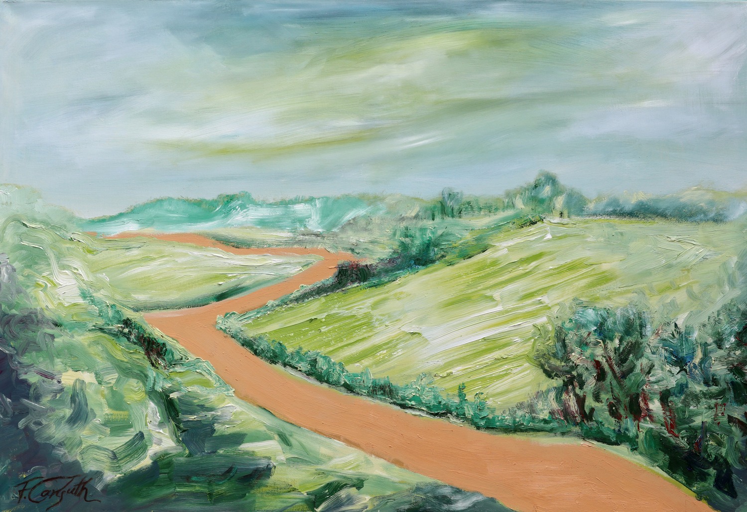 Eine neue Auffassung von Wirklichkeit entsteht beim „Weg“. Die Maltechnik ist zwar expressiv im Atelier entstanden, hat dennoch den Charakter einer Vegetation einer Berglandschaft. Das Motiv wirkt nahezu abstrakt und findet in der Bildfläche eine neue Bildform die durch gestisch frappierende Pinselstriche von Ölfarbe aufgetragen wurde. Farben die direkt aus der Tube auf die Bildfläche übertragen wurden, sowie auch Farbmischungen auf der Leinwand, bilden eine morphologische Struktur und Spuren eines künstlerischen Prozesses.